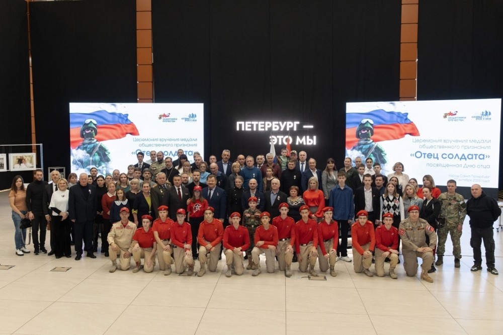 Первое награждение медалями «Отец солдата» накануне Дня отца прошло в Санкт-Петербурге на площадке музейно-выставочного комплекса «Россия — Моя история». Медалью были награждены 8 мужчин из северной столицы, чьи сыновья пали смертью храбрых в зоне специальной военной операции.