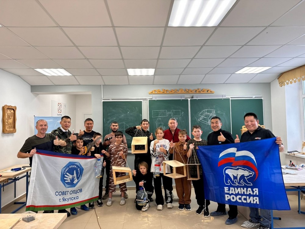 Еще один мастер-класс прошел с отцами и учащимися СОШ №13 при поддержке партии «Единая Россия». Мероприятие «Сделай вместе с Папой» объединило отцов и детей, в том числе семьи участников СВО, вместе они изготовили скворечники.