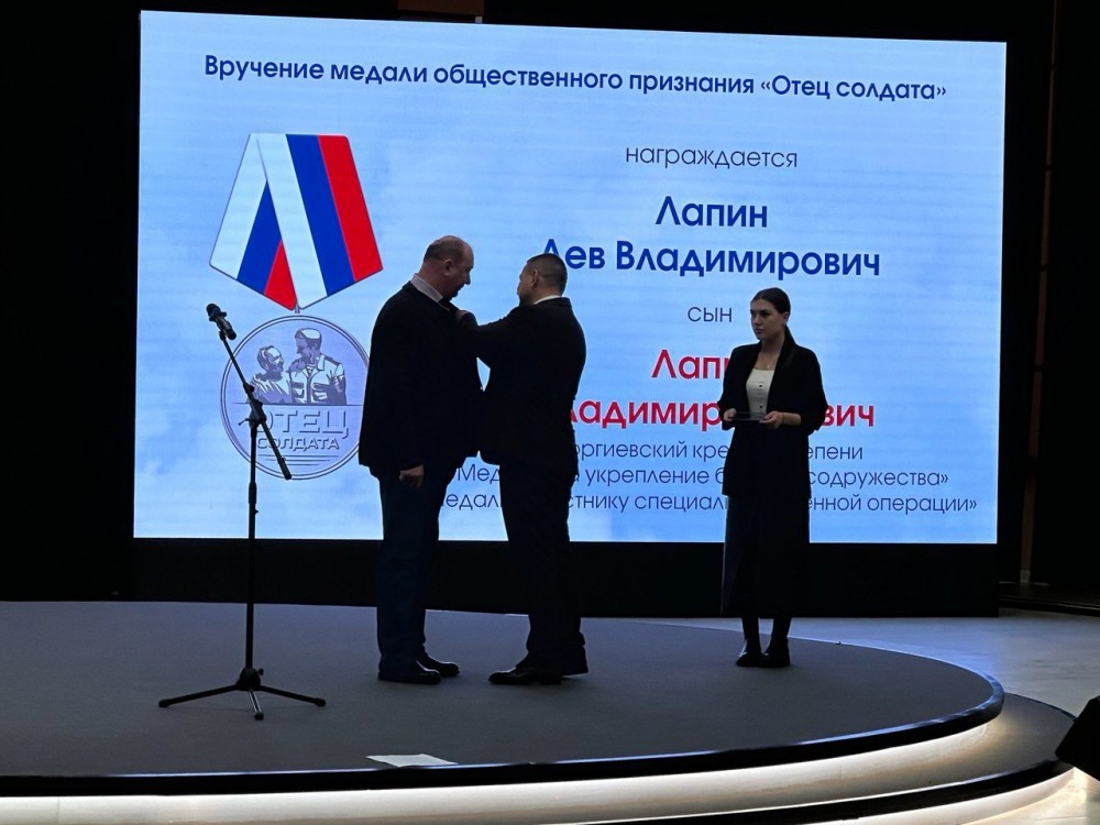 На церемонии также вручили медали общественного признания «Отец солдата» и поблагодарили родителей, воспитавших защитников Отечества.