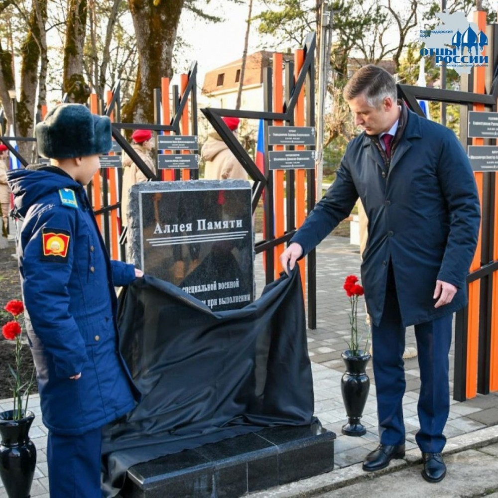 В этот же день отцы приняли участие в торжественном открытии Аллеи памяти воинов, погибших в ходе Специальной военной операции. Церемония прошла в городе Горячий ключ. Там также наградили медали «Отец солдата». Награду получили Олег Валентинович Матвеев, Протопопову Александру Анатольевичу и Позднякову Анатолию Петровичу. Имена погибших героев также увековечены на Аллее памяти в родном городе.