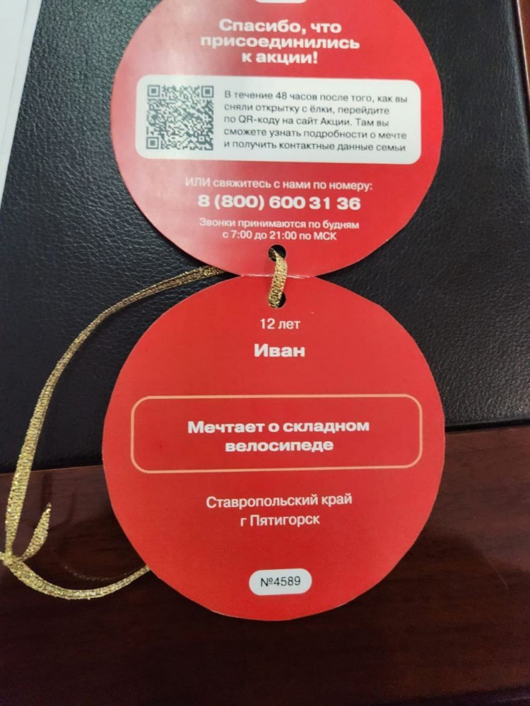 Ещё один подарок получил 12-летний Иван из Ставрополя. Мечту мальчика Артём Владимирович исполнил, участвуя в акции «Ёлка желаний».