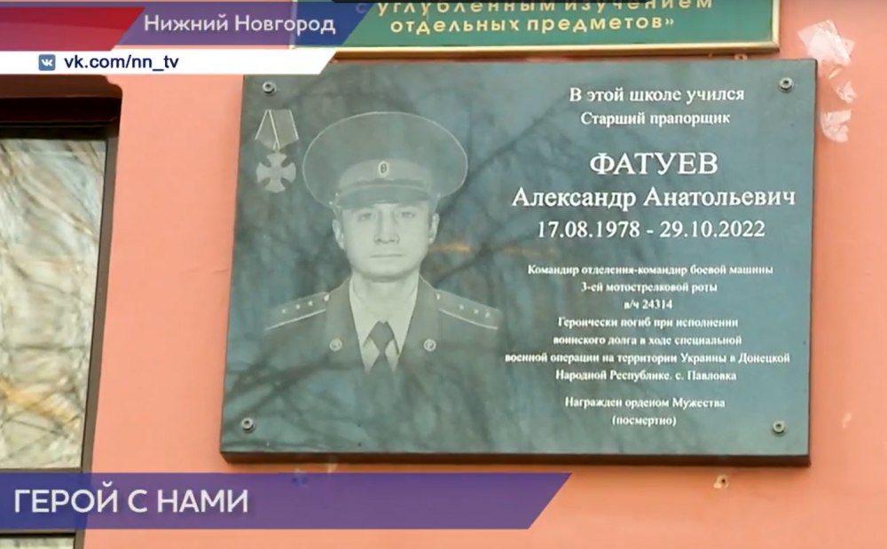 Отделение Всероссийского общественного движения «Отцы России» в Нижегородской области приняло участие в подготовке и открытии мемориальной доски памяти Александра Фатуева на территории городской школы №22.