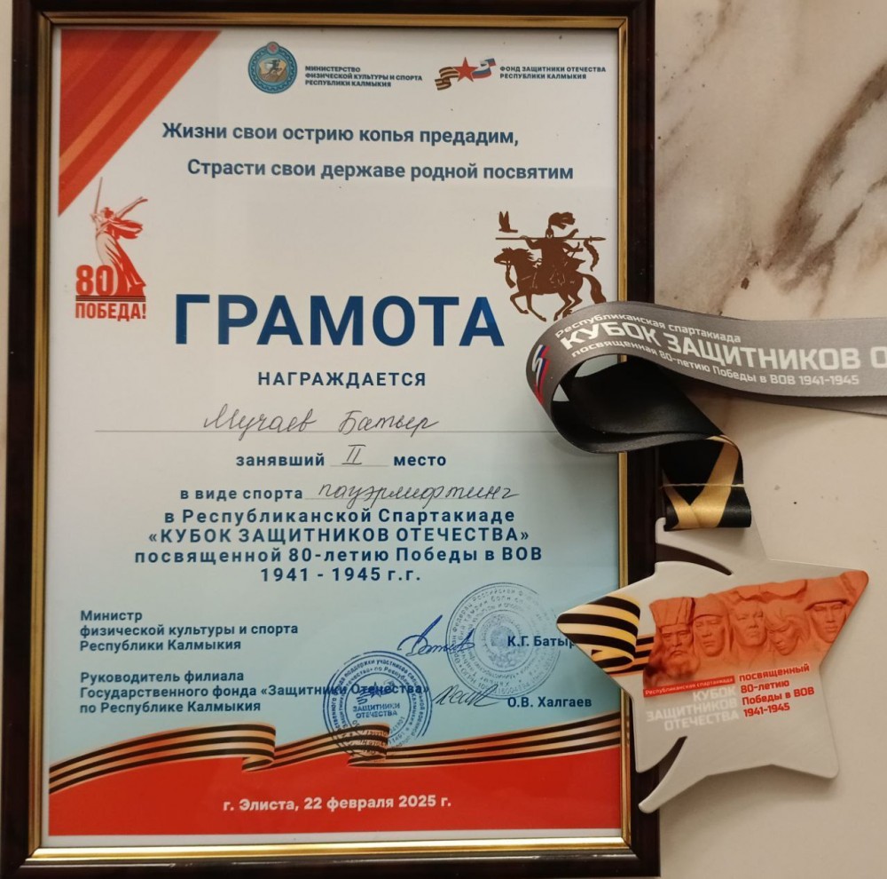 Председатель отделения Всероссийского общественного движения «Отцы России» в Республике Калмыкии Батыр Мучаев принял участие в Республиканской спартакиаде «Кубок защитников Отечества», посвящённой 80-летию Победы в Великой Отечественной войне. Батыр Иванович занял II место в пауэрлифтинге.