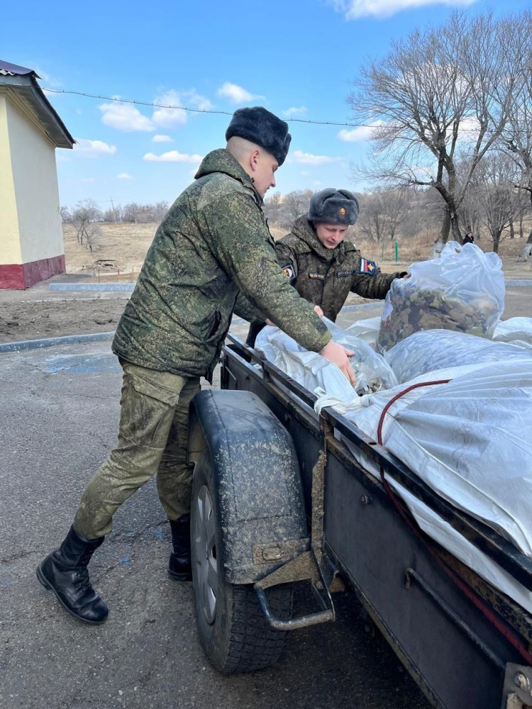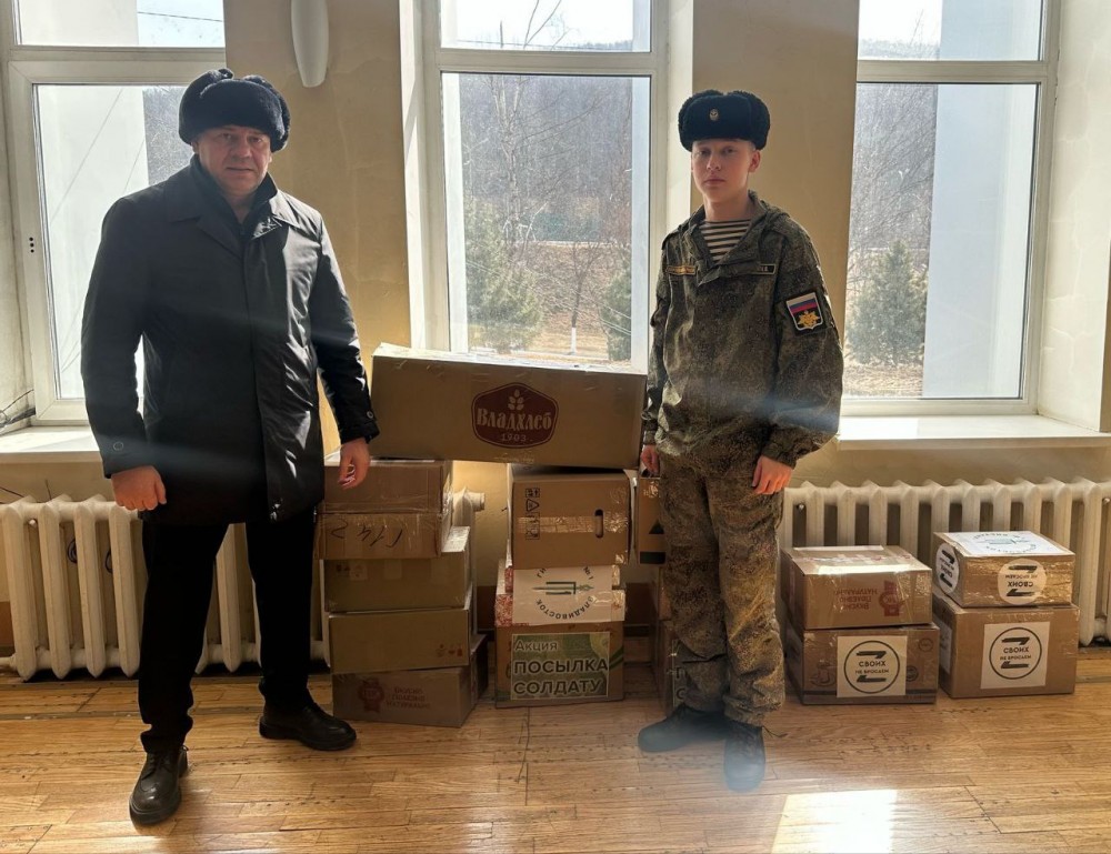 Председатель отделения ВОД «Отцы России» в Приморском крае Виктор Тарабарин передал гуманитарный груз бойцам 155-й бригады морской пехоты, который он ранее организовал в своем регионе. Активное участие в сборах приняли ученики 1-й гимназии города Владивостока.