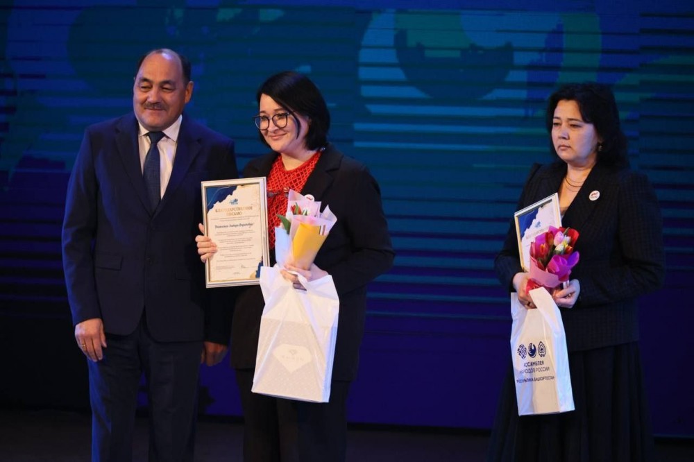 18 марта в Уфе, на торжественном закрытии IX Всероссийского конкурса «Женщина — мать нации», руководитель регионального отделения ВОД «Отцы России» в Республике Башкортостан Сынтимир Баязитов вручил благодарственные письма выдающимся женщинам-волонтерам Республики от Председателя Правления движения Андрея Коченова.