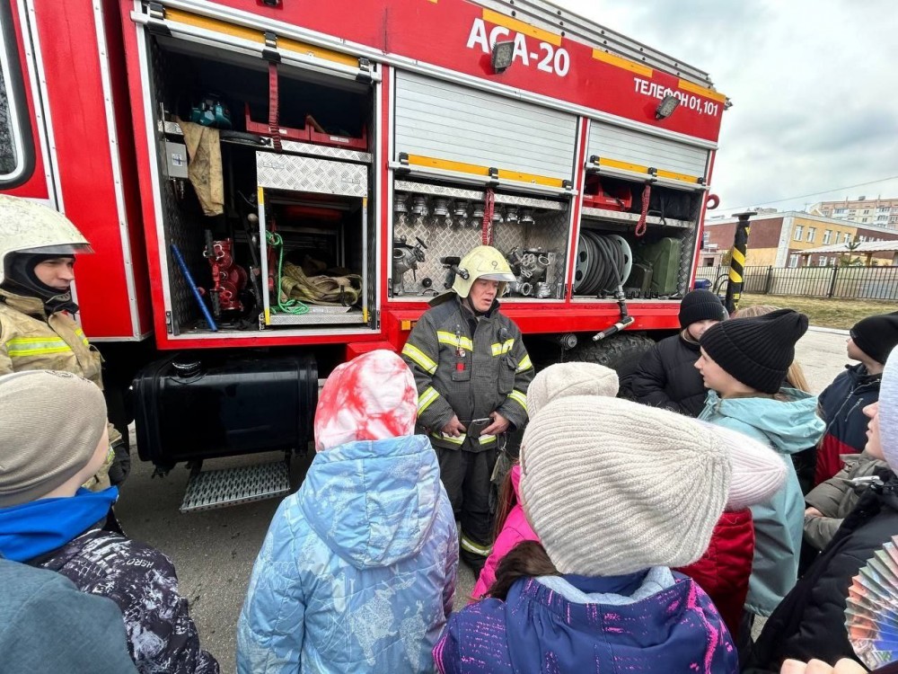 Сотрудники МЧС провели беседу с ребятами о правилах пожарной безопасности, напомнили им номера телефонов экстренных служб и рассказали об истории «чрезвычайного ведомства».