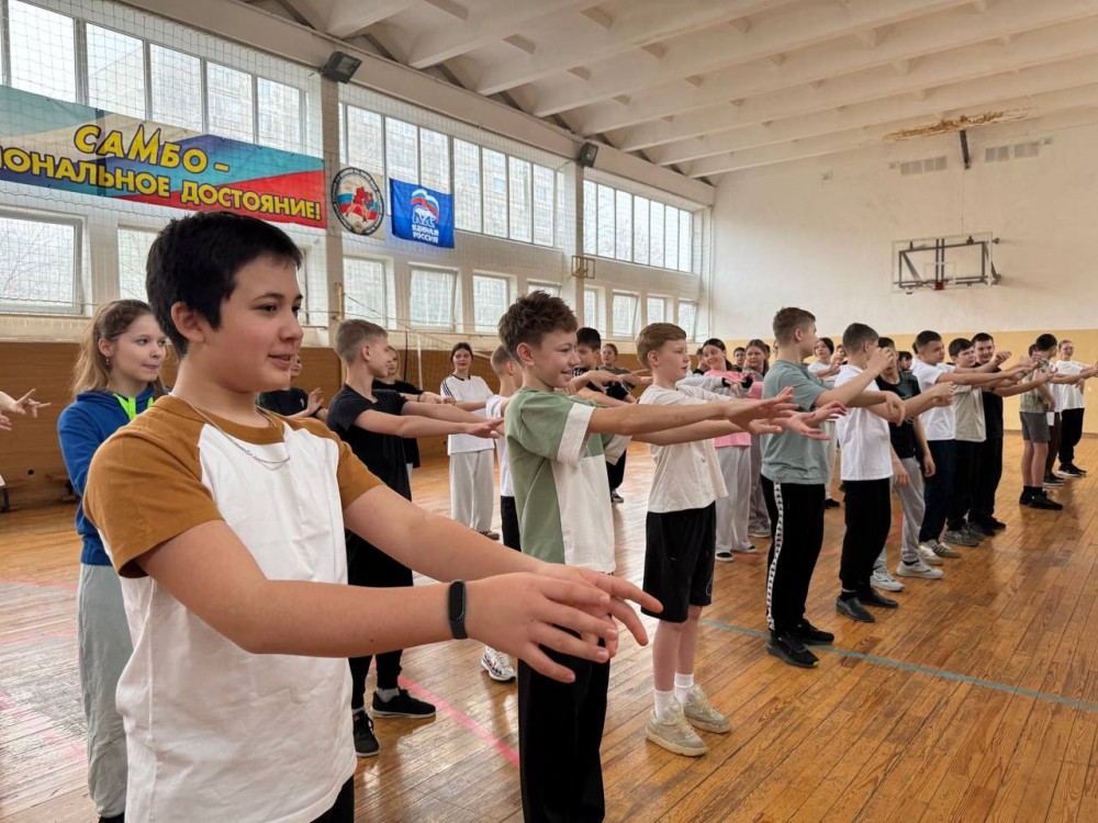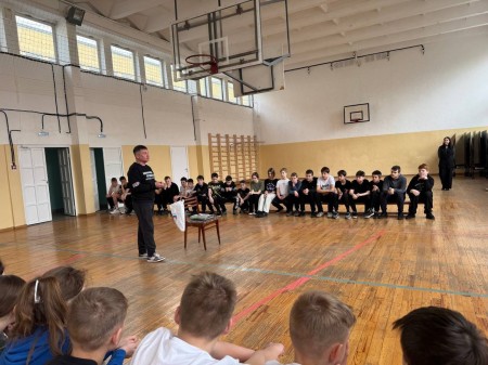 После зарядки он пообщался с учениками 6 и 7 классов и поделился своими спортивными достижениями и победами, порассуждал на тему важнейших жизненных ценностей — дружбы, семьи, учебы, уважения и взаимопонимания. Эти темы формируют нравственные ориентиры и помогают развивать эмоциональный интеллект.