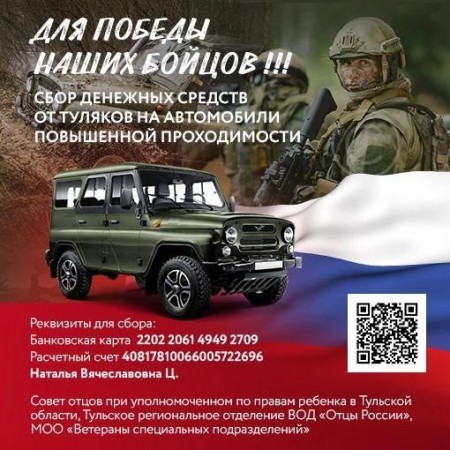 Тульские отцы также принимают машины типа НИВА и УАЗ для передачи конкретным подразделениям. Активисты движения организовали денежный сбор для приобретения и ремонта техники.
