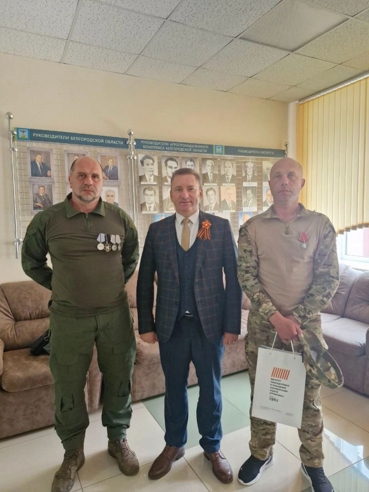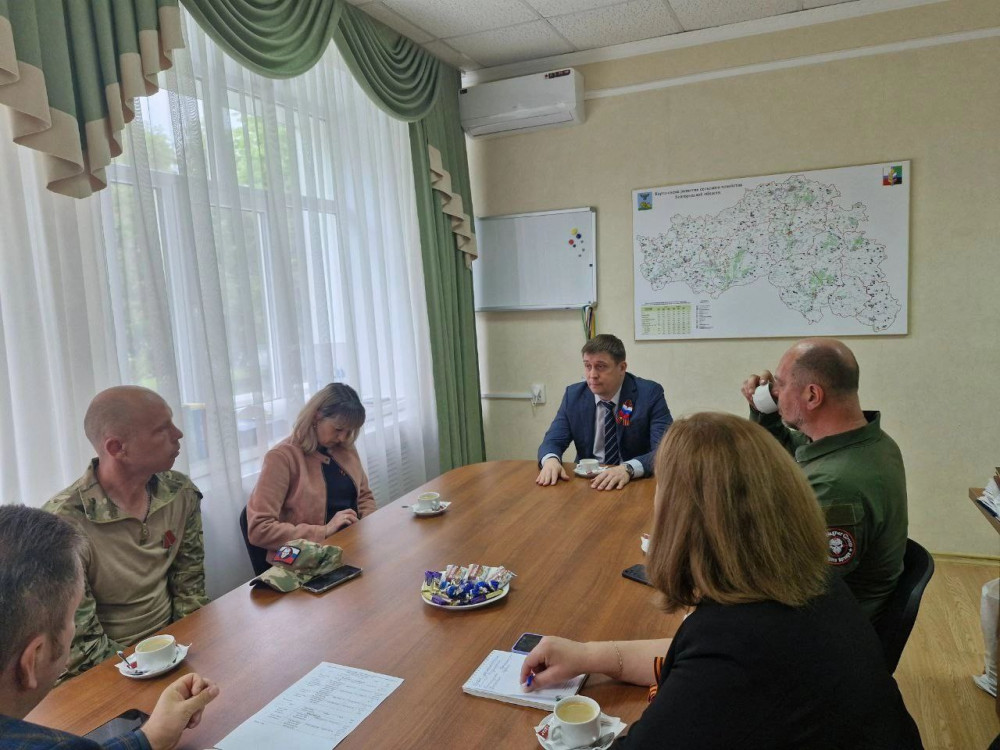 Александр Косов и заместитель Министра сельского хозяйства Белгородской области Андрей Цапков встретились с участниками специальной военной операции, слушателями проекта Россельхозбанка «Школа фермера». На встрече обсудили меры государственной поддержки для начинающих фермеров, а также перспективные проекты, которые слушатели хотели бы реализовать на территории региона.