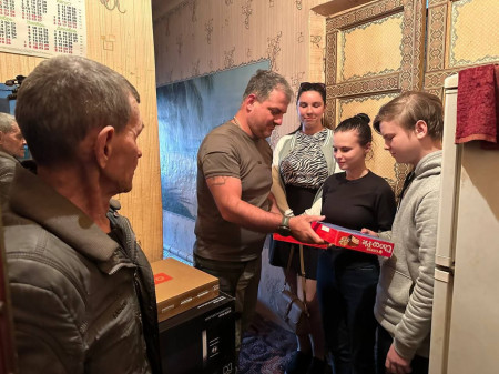 Вчера он посетил одну из таких семей в городе Перевальске. Двое подростков, брат с сестрой, недавно потеряли родителей. Теперь они живут у своего 85-летнего дедушки и несмотря на сложную ситуацию держатся стойко, стараются заботится друг о друге и помогать дедушке в быту.