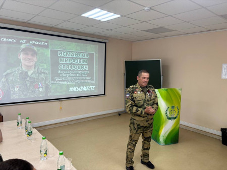 Миразым Исмаилов, участник СВО, секретарь Ассоциации ветеранов СВО РМ, награжденный медалью общественного признания «Отец солдата», поделился личной историей: как оказался на передовой, получил ранение и как сегодня помогает фронту, доставляя гуманитарные грузы. Он принёс экипировку бойцов — бронежилеты, каски, маскировочные костюмы. Студенты примерили её и буквально почувствовали вес ответственности.