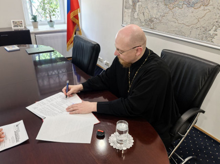 Всероссийского общественного движения «Отцы России» Андрей Коченов и Председатель Межрегионального общественного движения «Православный родительский комитет» отец Вячеслав Клюев заключили Соглашение о взаимодействии.