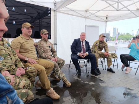 Заместитель председателя отделения Арутюн Арутюнян привлек ветеранов СВО и товарищей по фонду «Добровольцы Донбасса» к организации выставки современного оружия.