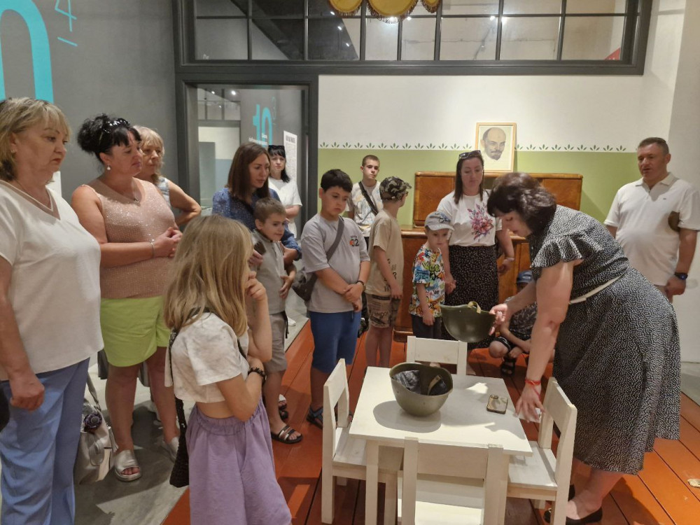 Затем дети отправились на экскурсию в Музей «Битва за оружие». Музей рассказывает о подвиге работников тыла в годы Великой Отечественной войны и их вкладе в общую победу. Дети посмотрели интерактивную презентацию о вкладе в работу тыла людей разных специальностей.