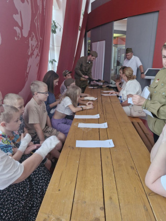 Ребята посетили музей Музей-заповедник «Прохоровское поле» и приняли участие в интерактивной игре «Курс молодого бойца»: надевали плащ-палатки и пилотки, учились оказывать первую медицинскую помощь, собирали на время вещмешки, изучали советские и немецкие мины, разбирали и собирали автомат Калашникова. Каждый ребенок получил удостоверение о прохождении Курса молодого бойца.