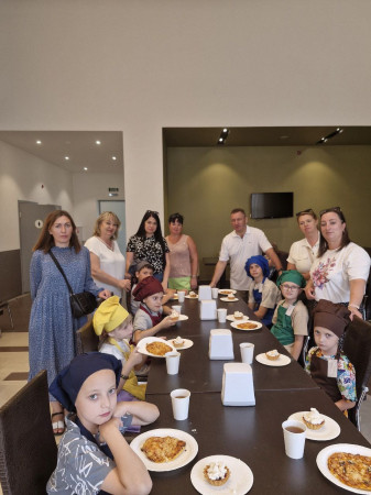 После экскурсии ребята сами приготовили пиццу и пирожное под руководством профессионального повара в кафе Музея Бронетанковой Техники и, конечно, вкусно пообедали в кафе «Блиндаж».