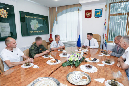 На днях в здании Законодательного Собрания Еврейской автономной области состоялась встреча Председателя ЗС Романа Бойко с участниками специальной военной операции, уроженцами Октябрьского района автономии Владимиром и Дмитрием Грибковыми и Денисом Чупровым.