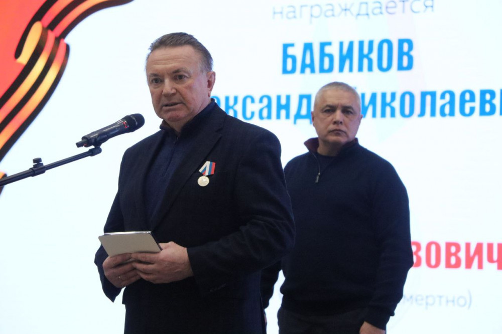Вместе с почётными гостями церемонии иедали отцам вручил Председатель отделения Всероссийского общественного движения «Отцы России» в Санкт-Петербурге и Ленинградской области Дмитрий Карбаинов.