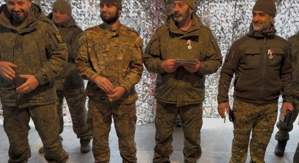 Отцы наградили бойцов, которые служат в зоне СВО вместе со своими сыновьями, в подразделений «Каспий» .