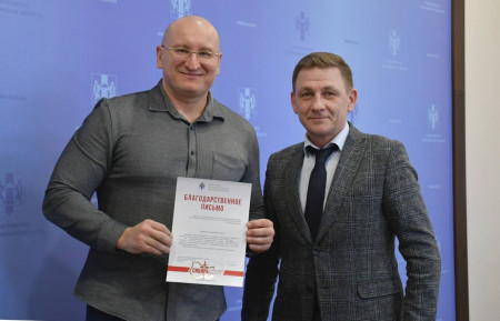 Роман Бурдин вручил Алексею Крыжановскому, председателю Совета отцов по центральному округу города Новосибирска — отделению ВОД «Отцы России» — благодарственное письмо за личную вовлеченность и участие команды в развитии ответственного отцовства, поддержке материнства и детства в Новосибирской области.