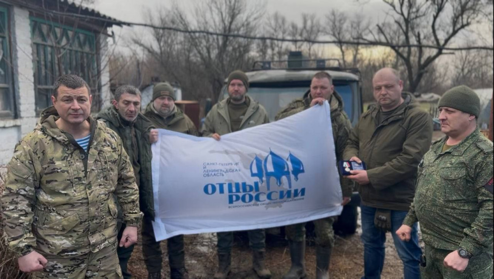 Сегодня на передовой, в Донецкой Народной Республике, делегация отделения Всероссийского общественного движения «Отцы России» в Санкт-Петербурге и Ленинградской области вручила медаль общественного признания «Отец солдата» Вячеславу Леонидовичу Дерягину.