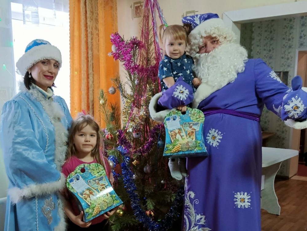 Сказочные персонажи поздравили детей с Новым годом и пожелали всем крепкого здоровья. Мальчишки и девчонки водили с гостями хороводы, рассказывали стихи и пели песенки, а Дедушка Мороз и внучка вручали детям подарки.
