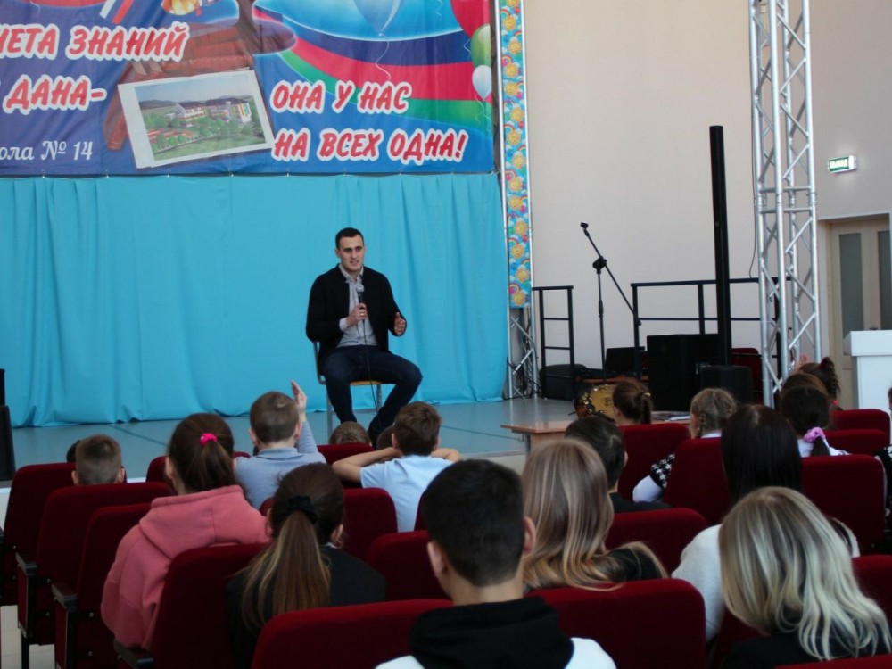Депутат Законодательного Собрания, представитель Совета отцов Приморского края Александр Захаров пообщался с учениками школы № 14 села Подъяпольское Шкотовского района и провел с ними совместную спортивную разминку в рамках проекта «(НЕ)Обычные люди».