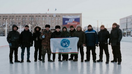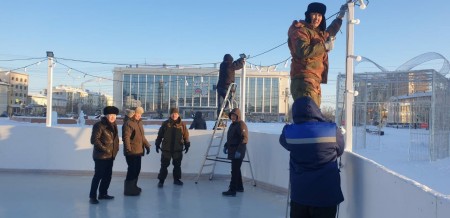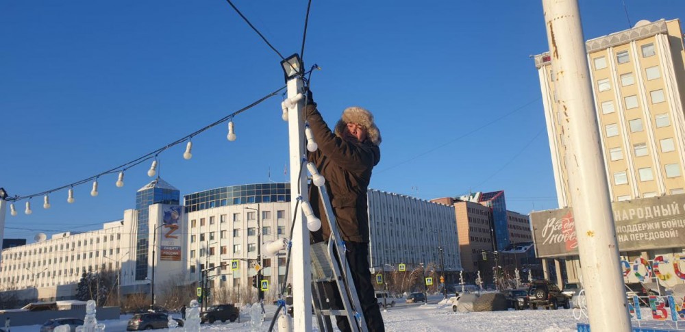 Еще одну спортивную акцию провел Совет отцов города Якутска. Отцы монтировали уличную гирлянду на катке центральной площади столицы Республики.