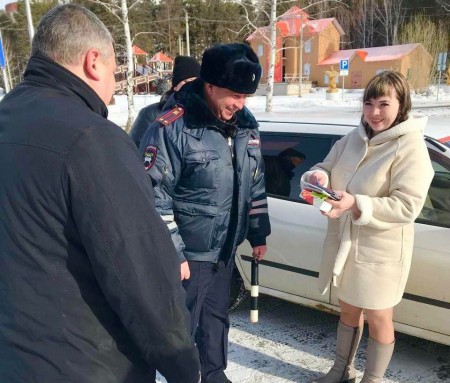 Акция проходила на площади Графа Сперанского. Иркутские автоинспекторы поздравляли женщин вместе с городским Советом отцов во главе с председателем Виталием Медведевым.