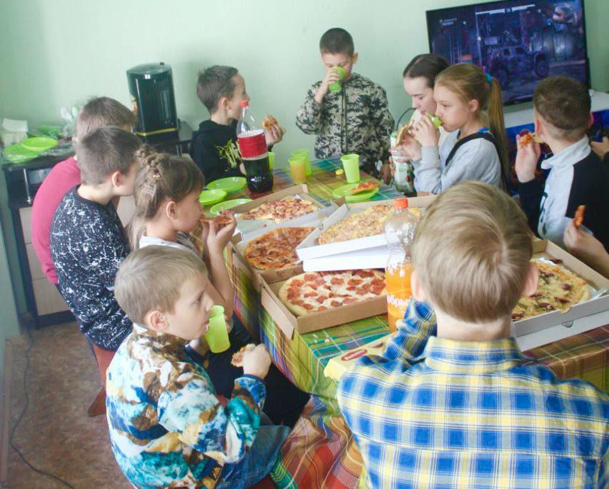 После турнира отцы и дети с большим аппетитом поели пиццу.