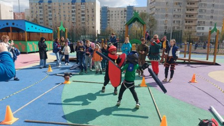 Ребята соревновались в стрельбе из лука, участвовали в эпичных схватках на безопасных мечах. А в импровизированном музее узнали историю холодного оружия, подержали в руках средневековый меч, шпагу времен мушкетёров.