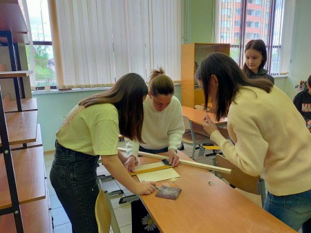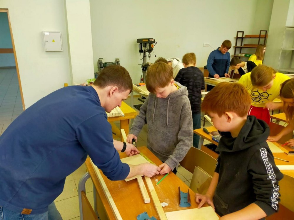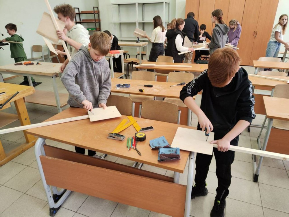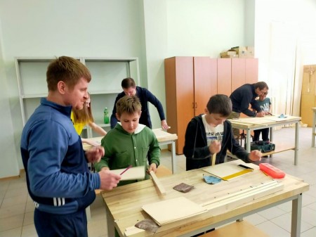 Пятиклассники вместе с мамами и папами своими руками сделали таблички для обозначения разминированных территорий. Даже девочки проявили интерес к столярному делу!