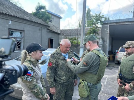 Сегодня, в день Православной Троицы, празднует свой день рождения хрупкая девушка с Донбасса Настя. Ей исполнилось 24 года. Вчера на передовой Председатель Правления ВОД «Отцы России» Андрей Коченов вручил её папе медаль общественного признания «Отец солдата».