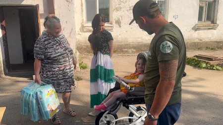 По скромному запросу бабушки отцы привезли необходимую для ребёнка помощь. Вероника очень нуждалась в удобной коляске, чтобы можно было доехать до районного центра или Перми, памперсах и продуктах питания. На первое время отцы снабдили семью недостающими вещами.