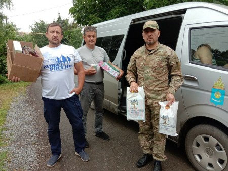 Отцы также навестили ребят из местного дома-интерната, привезли игрушки, канцелярские товары, сладости, а после встретились с командиром легендарного батальона «Спарта» Артёмом Жогой и передали ему подарок от астраханского художника.