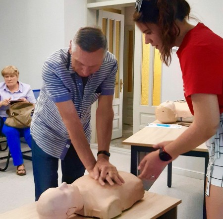 Гостям рассказали о критических терминальных состояниях, о том, как определить клиническую и биологическую смерть, как правильно делать искусственное дыхание и наружный массаж сердца. Приёмы сердечно-легочной реанимации участникам встречи показали на специальных тренажёрах-манекенах. Многие из них смогли проверить свои способности в реанимации на предоставленных манекенах.