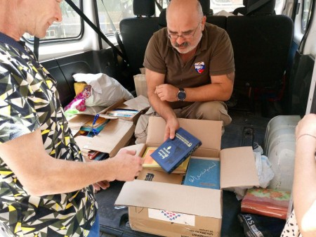 Отцы привезли книги, учебники, тетради. Существенную часть помощи ученикам и коллегам оказала педагог из Северо-восточного округа Москвы по имени Ольга.