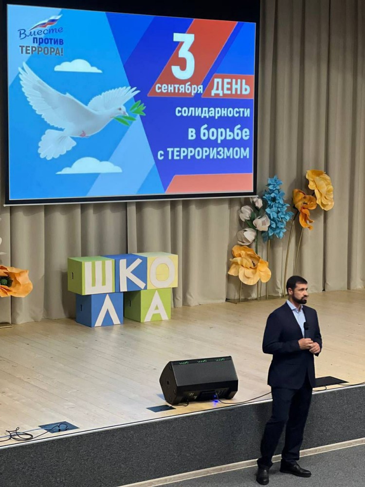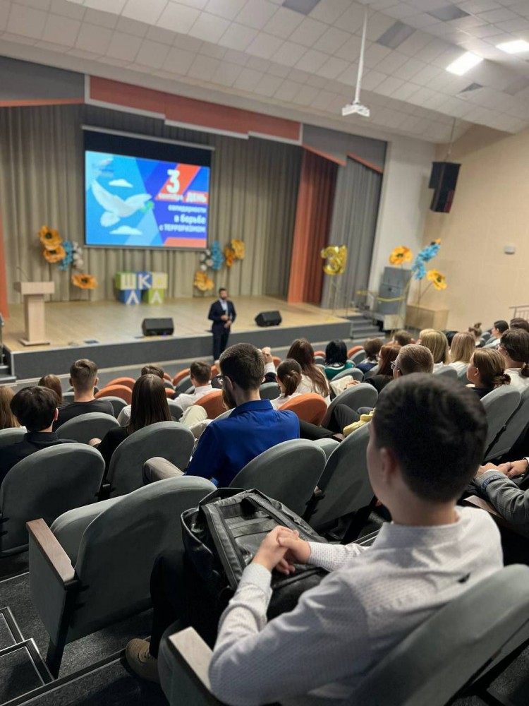 Вячеслав Павлович рассказал детям о трагических днях сентября 2004 года и порассуждал с ребятами о том, как сейчас чувствуют себя люди, проживающие в зоне постоянных боевых действий и непрекращающегося ужаса.