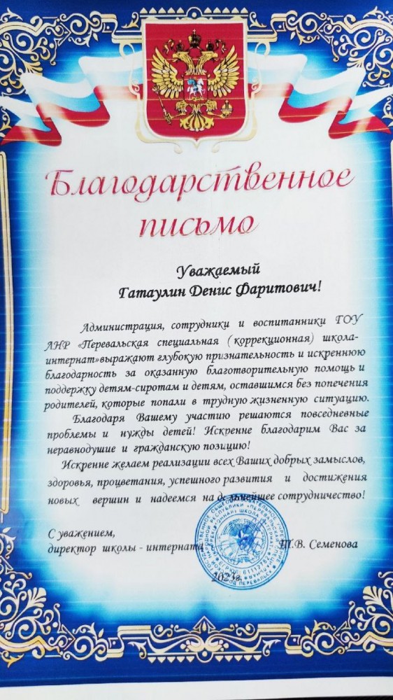 Антон Шалимов и Арутюн Арутюнян на собрании передали всем отцам привет из ЛНР. Отцы вернулись из поездки и передали коллегам – Председателю отделения ВОД «Отцы России» в Пермском крае Сергею Большакову и активисту Денису Гатаулину простые, но бесценные письма от одного из интернатов Луганской Народной Республики. Директор интерната выразила отцам признательность за поддержку и отметила, что благодаря их помощи, решаются повседневные нужды детей.