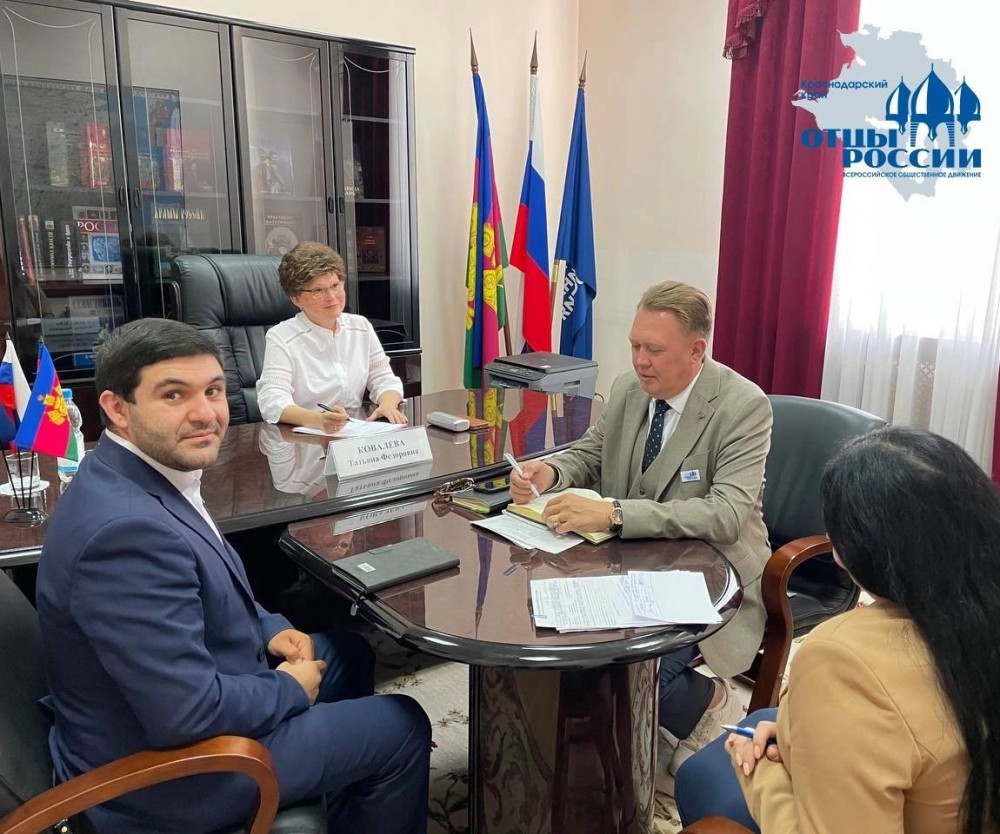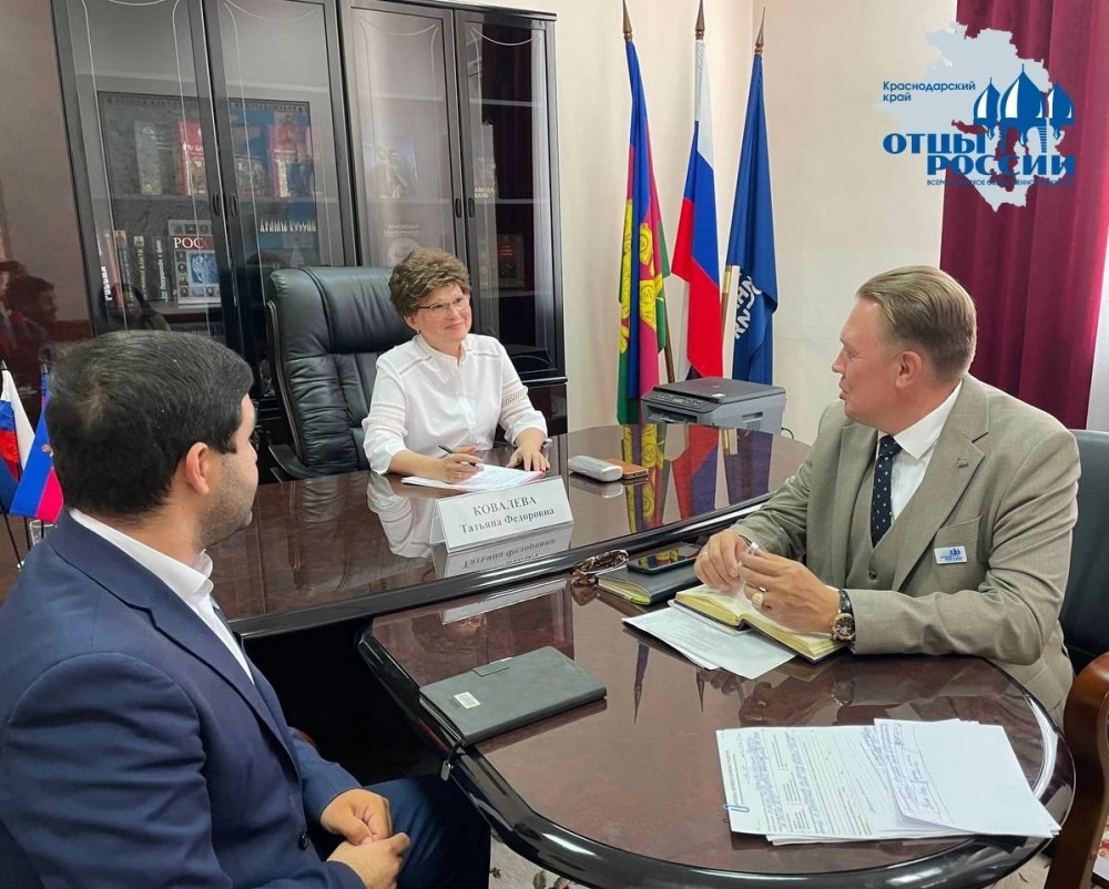 Председатель регионального отделения ВОД «Отцы России» в Краснодарском крае Павел Ерагер и его заместитель Ашот Алтунян провели рабочую встречу с Уполномоченным по правам ребёнка в Краснодарском крае Татьяной Ковалёвой.