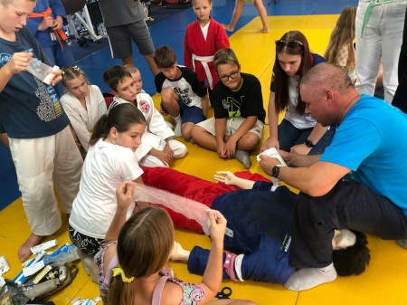 Основы медицинской помощи ребятам раскрыли квалифицированные специалисты – Дмитрий Бородин, врач 1-й Городской больницы им. Н.И. Пирогова, и Председатель нашего отделения в Севастополе Виталий Мефаник, он – военный санитар-инструктор.