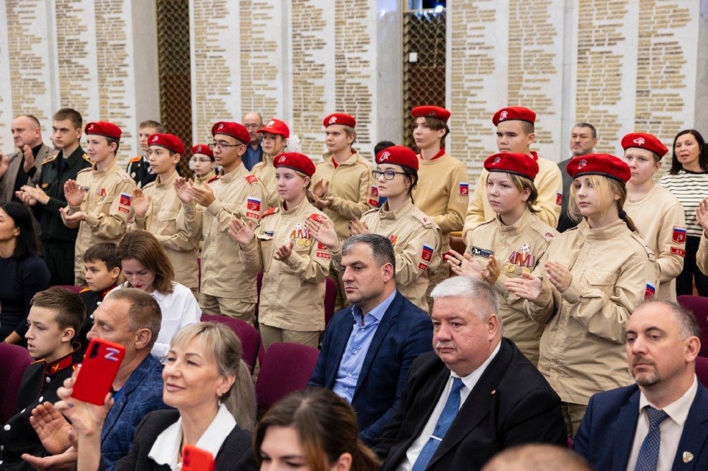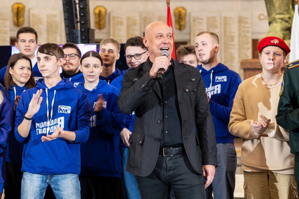 На торжественной церемонии «Отец солдата» произошел трогательный момент. Когда первый заместитель председателя комитета по культуре ГД и заслуженный артист России Денис Майданов начал петь песню «Флаг моего государства», молодёжь в зале, не сговариваясь, встала – кадеты, юнармейцы и представители «Молодой Гвардии». Денис Васильевич пригласил ребят выйти к нему на сцену, чтобы показать гостям будущее России. И оно прекрасно!