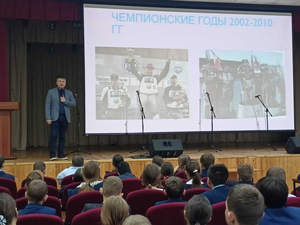 , — поделился с ребятами мастер спорта международного класса по мотоспорту, чемпион мира и двукратный чемпион Европы по мотогонкам на льду.