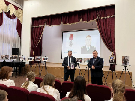 Александр Владимирович представил лицеистам экспозицию с фотографиями награждённых медалью «Отец солдата» и рассказал о важнейшей роли отцов в воспитании настоящих патриотов, защитников и героев нашей Родины. Выставка стала данью уважения родителям, чьи сыновья проявили мужество и доблесть в ходе специальной военной операции.