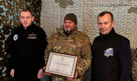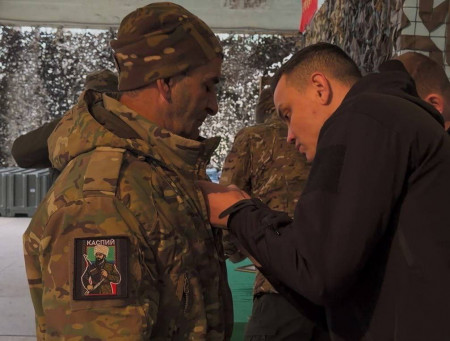 Отцы наградили бойцов, которые служат в зоне СВО вместе со своими сыновьями, в подразделений «Каспий» .