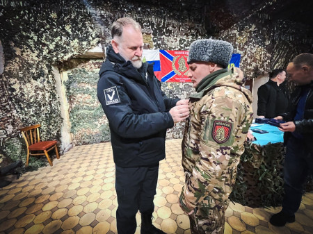 Председатель Правления движения Андрей Коченов вручил 21 медаль общественного признания «Отец солдата» нашим воинам.