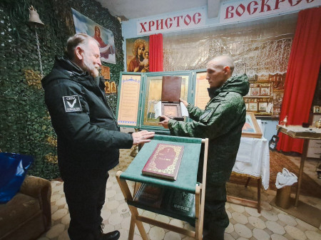 Кроме медалей бойцам вручили детские письма со словами поддержки. Также бригаде была передана икона Святого Благоверного князя Дмитрия Донского.