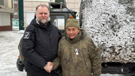 На прошедшей неделе Наградная группа Всероссийского общественного движения «Отцы России» посетила передовую для вручения медалей общественного признания «Отец солдата» бойцам, которые служат в зоне СВО вместе со своими детьми.