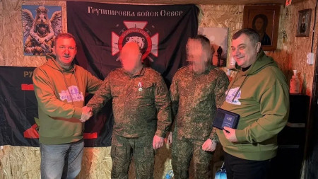 ▫️Представители отделения РО ВОД «Отцы России» в Белгородской области во главе с председателем Александром Владимировичем Косовым, членом Общественной палаты Белгородской области, выполнили почетную миссию в зоне СВО — вручили медаль общественного признания «Отец солдата» Василию Васильевичу Куприну.