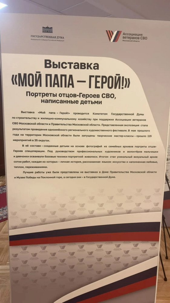 Несомненно, самый главный и самый действенный воспитатель — это личный пример. Мы воспитывались на примерах наших дедов-ветеранов, сегодня перед глазами наших детей примеры героев СВО, которые совершают подвиги, защищая Родину. Проект «Мой папа – герой!» стартовал в мае 2025 года в Красногорске, прошёл в более чем 30 муниципальных округах Подмосковья, объединил сотни детей, которые под руководством профессиональных художников создавали образы своих пап. Патриотическая повестка в Государственной Думе звучит непрерывно. Недавно мы провели в стенах парламента торжественную церемонию вручения медалей общественного признания «Отец солдата»: в зале более двух часов стоя приветствовали родителей героев — тех, кто воспитал защитников Отечества. Проходят выставки и обсуждения и ведётся большая законотворческая работа по защите ценностей и сохранению исторической памяти. С Сергеем Владимировичем Колуновым, организатором выставки, договорились: тиражировать инициативу по всей стране. Комиссия «Единой России» по защите семьи подключится к этой работе вместе с движением «Отцы России». Так как считаем, что такие проекты должны получать федеральное звучание и доходить до самых дальних уголков России, ведь и в самом дальнем уголке нашей Родины есть свои герои. А также продолжим нашу законодательную работу по поддержке патриотического воспитания. Спасибо организаторам, Ассоциации Ветеранов СВО Подмосковья, всем представителям фракций, кто сегодня поддержал открытие, низкий поклон нашим бойцам, которые с детьми пришли на открытие выставки.